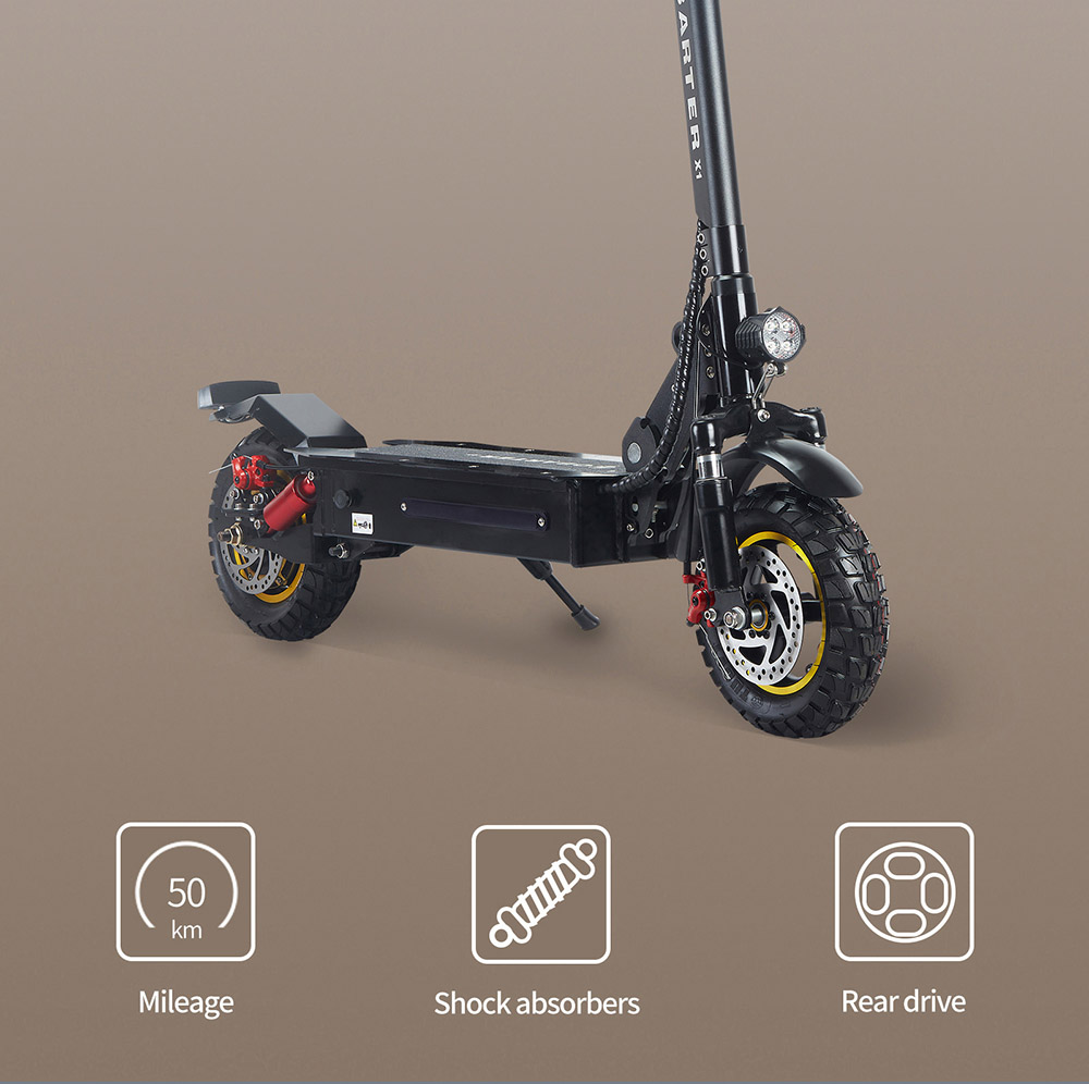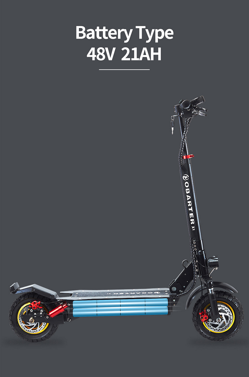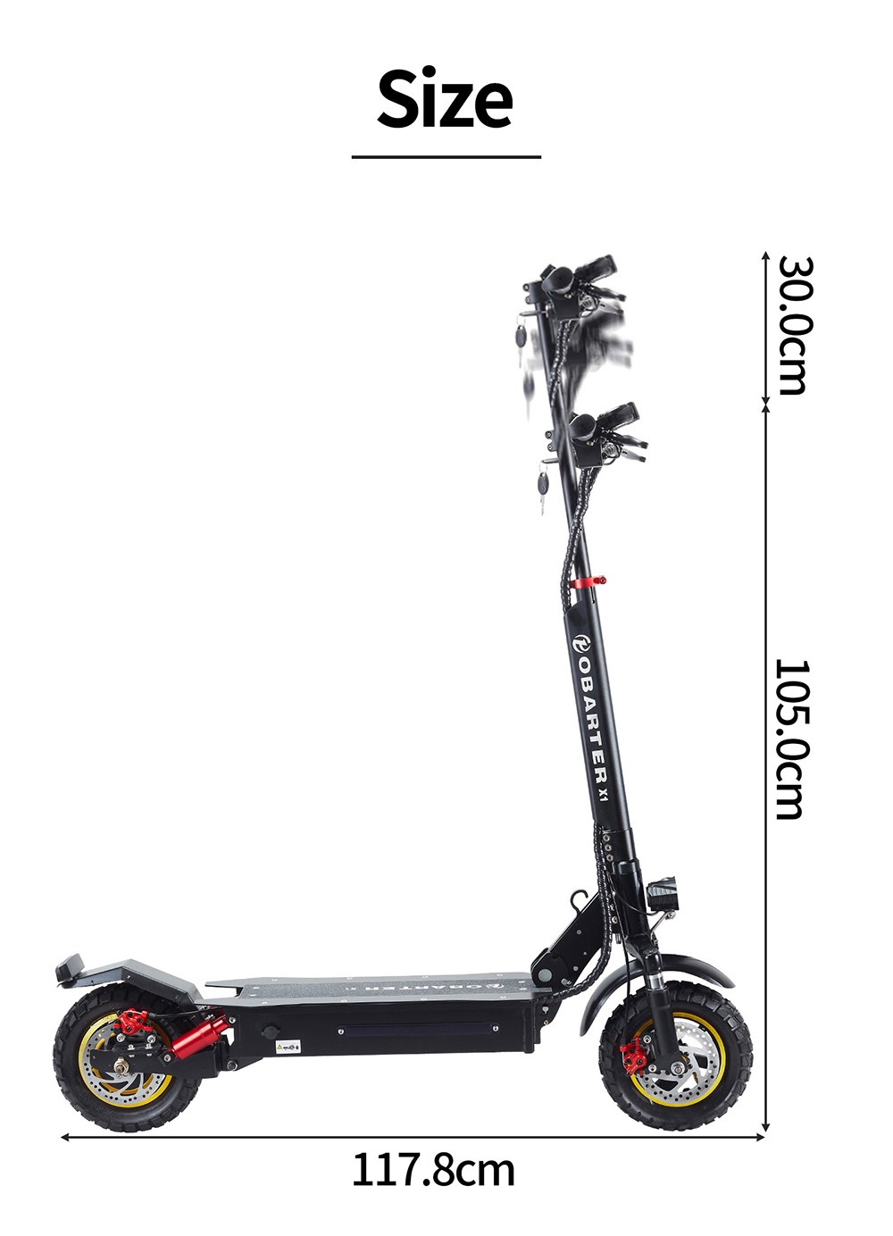 OBARTER X1 è dotato di eccellenti pneumatici off-road da 10 pollici, aderenti e molto resistenti, che rendono la guida più sicura. Adatti a tutti i tipi di superficie stradale.