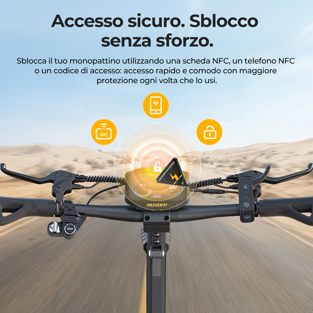 Dotato di sblocco senza chiave doppio — NFC + codice, il Gosoul 2 Pro offre un accesso rapido e sicuro con protezione antifurto per l’uso quotidiano. La certificazione IP54 garantisce prestazioni affidabili anche sotto la pioggia e in condizioni atmosferiche difficili. Include inoltre un sistema di illuminazione completo con faro anteriore luminoso, luce posteriore, indicatori di direzione e luci ambientali, migliorando visibilità e sicurezza durante la guida notturna o in condizioni di scarsa illuminazione, oltre a conferire un aspetto moderno e premium.