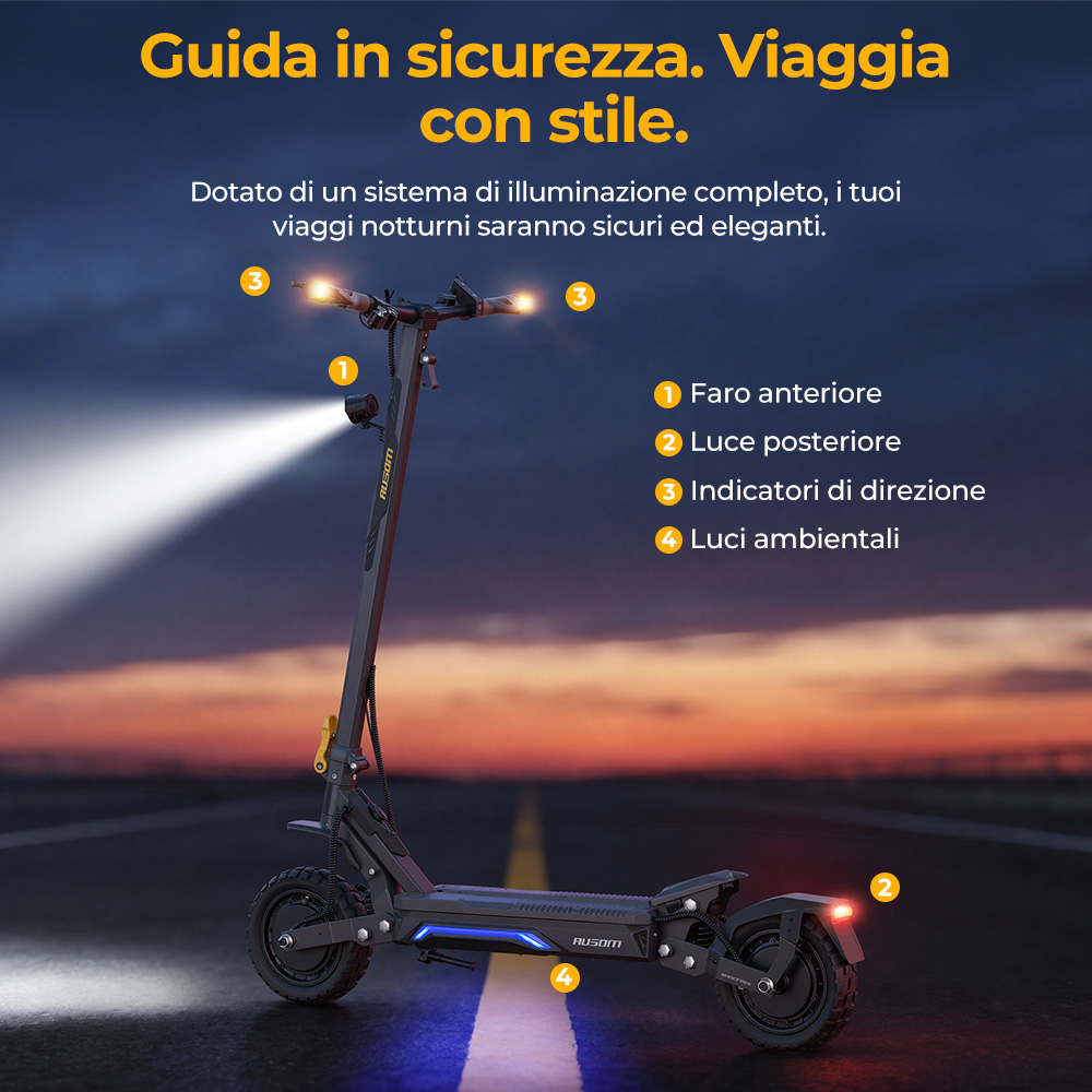 Doppio freno a disco anteriore e posteriore e fantastica luce ambientale